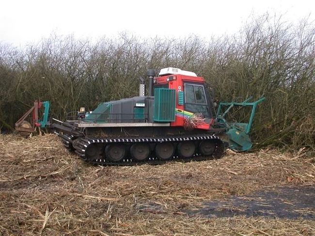 Die Pistenraupe mit der Forstfräse arbeitet effizient und schonend im Schilf