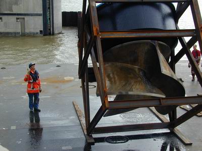 Die Pumpen in den 6 Strompfeilern müssen eine Dauerleistung von 100 m³/s erfüllen. Um diese Bedingung über eine Zeitdauer von max. 40 Stunden bei wechselnden Tidewasserständen einzuhalten, werden zwei Pumpentypen mit den nachstehenden Hauptdaten eingesetzt: