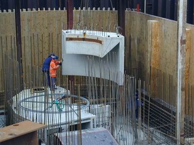 Wegen der geringen Pfeilerabmessungen mußte ein beidseitiger Zulauf gewählt werden.