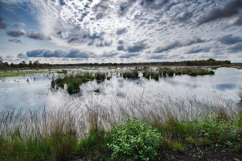 In den Randbereichen finden sich neben pfeifengrasreichen Moorwäldern mit Birken und Kiefern sowie Brachflächen mit jungen Gehölzen auch extensiv genutztes Grünland, Intensivgrünland und Ackerflächen.