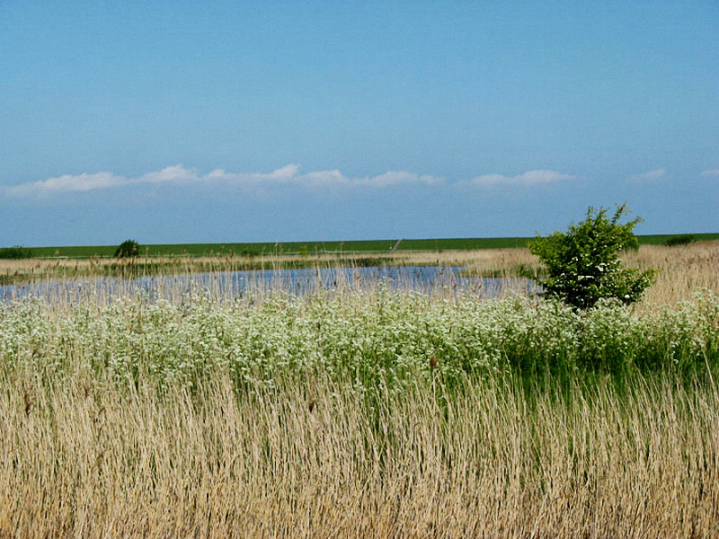 Auch für die in Niedersachsen vom Aussterben bedrohte Wiesenweihe ist die Marsch ein wichtiges Brut- und Nahrungsgebiet. Ursprünglich brütete die Art ihrem Namen entsprechend in den selten gewordenen Wiesen der feuchten Niederungen. Inzwischen werden die Nester zunehmend, wie hier im Vogelschutzgebiet, gut versteckt am Boden in Getreidefeldern angelegt.