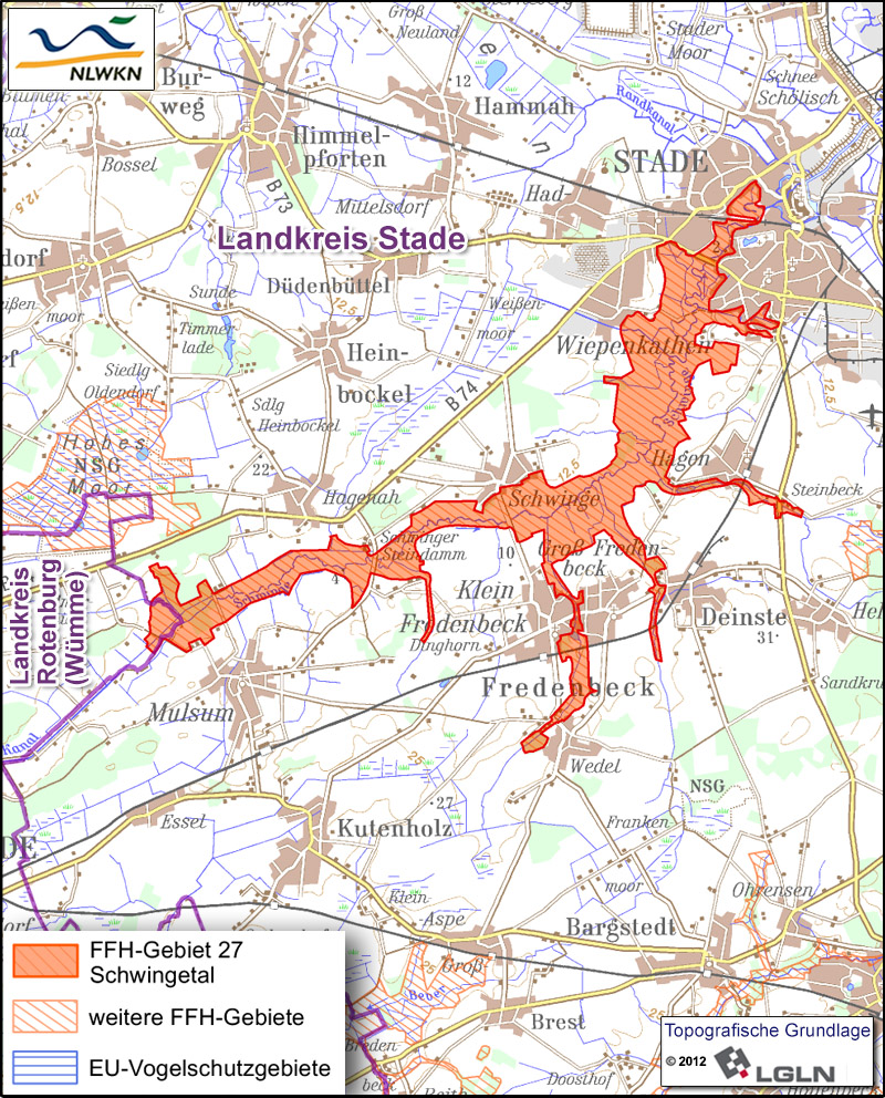 Kleinere Abschnitte der Schwinge und der zum Gebiet gehörenden Nebenbäche entsprechen dem Lebensraumtyp der Fließgewässer mit flutender Wasservegetation. Zum Flusssystem der Elbe gehörend, sind die Schwinge und ihre Nebenbäche von besonderer Bedeutung als Wanderkorridor und Habitat für einige besonders geschützte Arten der Neunaugen. Fluss- und Meerneunauge sind in Niedersachsen als anadrome, das heißt zum Laichen vom Salz- ins Süßwasser wandernde Arten auf naturnahe Flüsse und Bäche mit Verbindung zur Nordsee angewiesen. Das mit dem Flussneunauge eng verwandte, ebenfalls im Gebiet vorkommende Bachneunauge verbleibt als stationäre Art lebenslang im Süßwasser. Von den Fließgewässern und vielfältigen Feuchtbiotopen des Gebiets profitieren auch andere seltene Tier- und Pflanzenarten wie der Fischotter.Sicherung des Gebietes