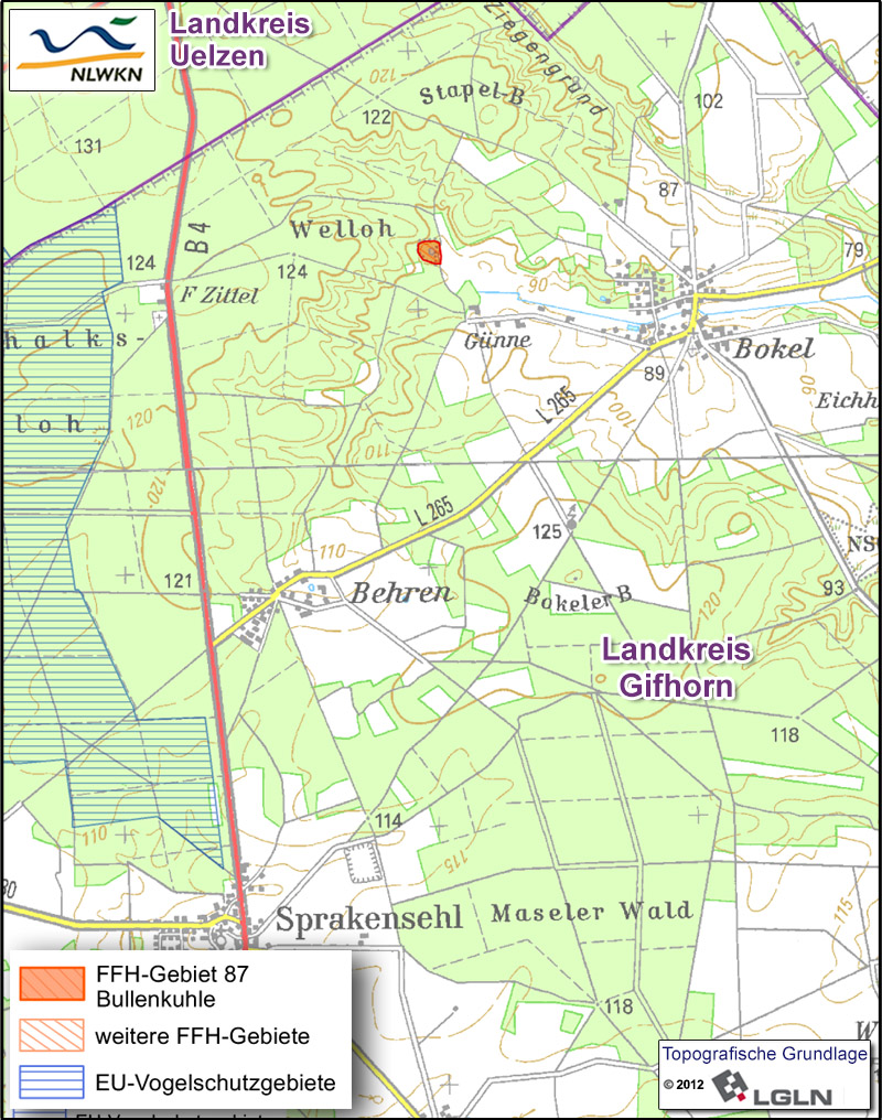 Das FFH-Gebiet „Bullenkuhle“ liegt westlich von Bokel und umfasst ein Kleinstmoor mit umgebenden Heiden und Wacholdergebüschen in einer als Erdfall entstandenen Senke. Tiefere Salzschichten unter den charakteristischen Geestböden der Hohen Heide waren hier Lösungsprozessen ausgesetzt, die letztlich zum Einbruch der oberen Gesteins- und Bodenschichten führten.
