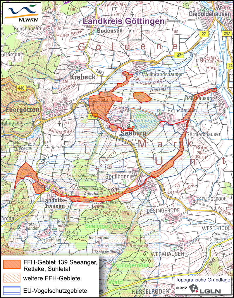 Das FFH-Gebiet „Seeanger, Retlake, Suhletal“ umfasst verschiedene Feuchtbiotope um die Bachläufe von Suhle, Retlake und Aue östlich von Göttingen und liegt zum größten Teil im Naturraum Eichsfelder Becken. Das Eichsfeld stellt sich – aufgrund der Absenkung des Gebiets als Folge der Lösung tieferer Zechsteinsalze – als eine flachwellige Ebene dar, die durch die dünne Lössauflage auf Buntsandstein von fruchtbaren Böden und somit großflächig von landwirtschaftlicher Nutzung geprägt ist.