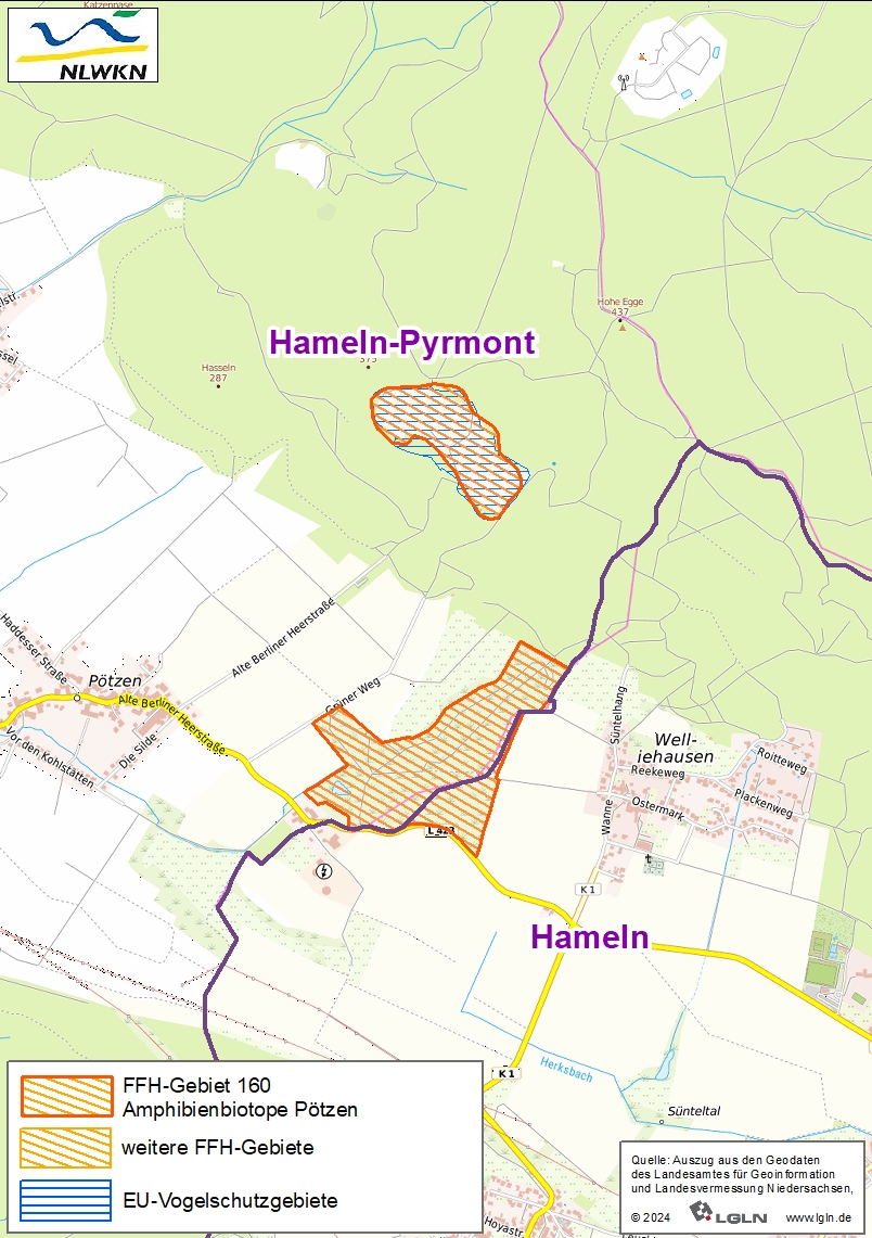 Das FFH-Gebiet „Amphibienbiotope Pötzen“ umfasst einen stillgelegten Kalksteinbruch sowie ein ehemaliges militärisches Übungsgelände am Südhang des Süntels im Calenberger Bergland nördlich von Hameln. Die zwei Gebietsteile stellen für die streng geschützte und vom Aussterben bedrohte Gelbbauchunke bedeutende Lebensräume dar. Nahe der nördlichen Verbreitungsgrenze dieser auf der Unterseite auffällig gefärbten Unke befindet sich eines der landesweit bedeutendsten Vorkommen.