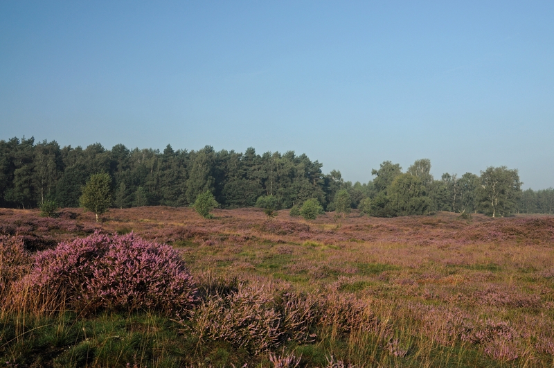 Besenheide - im Hintergrund Kiefernforst