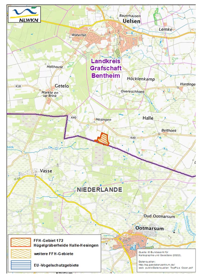 Das FFH-Gebiet „Hügelgräberheide Halle-Hesingen“ liegt westlich von Nordhorn nahe der Ortschaft Hesingen an der Landesgrenze zu den Niederlanden. Die für das Gebiet charakteristischen Zwergstrauchheiden und Eichenwälder setzen sich im niederländischen FFH-Gebiet „Springendal & Dal van de Mosbeek“ fort. Durch mehrere Hügelgräber und Wölbäcker ist die Hügelgräberheide auch aus kulturhistorischer Sicht bedeutsam.