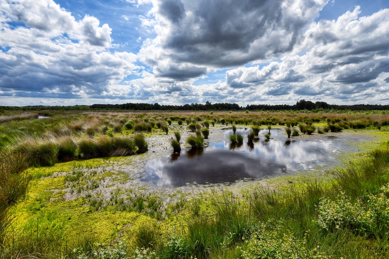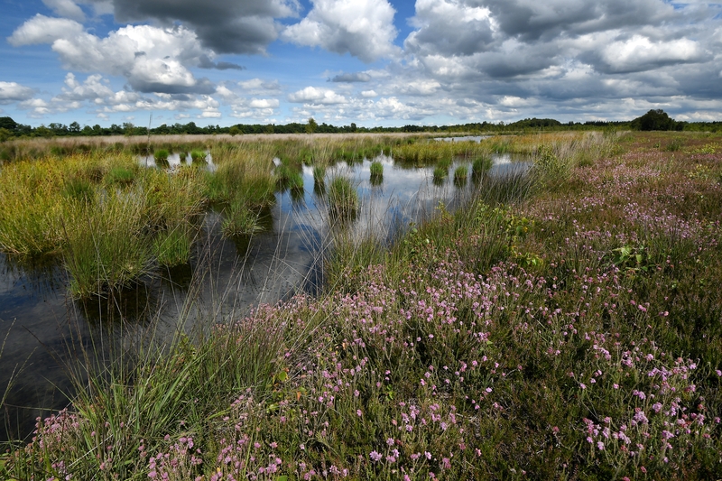 Wiedervernässter Polder mit Glockenheide und Flatterbinse