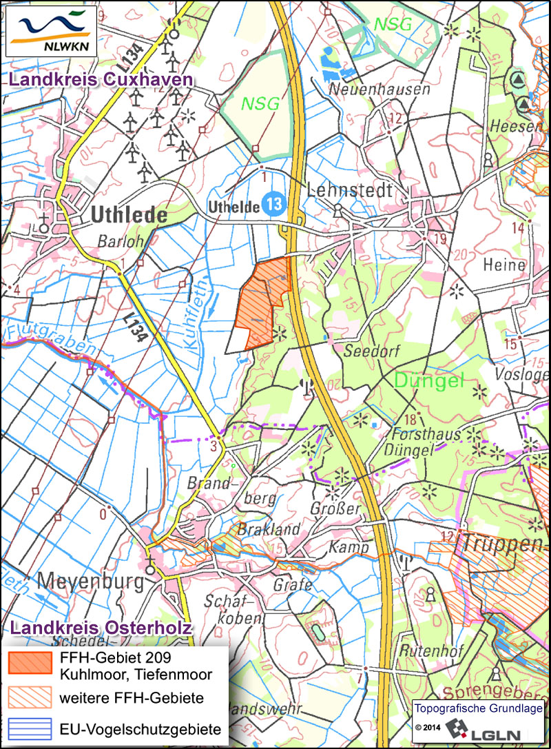 Das FFH-Gebiet „Kuhlmoor, Tiefenmoor“ liegt östlich von Uthlede und wird insbesondere von strukturreichen Moorwäldern geprägt.
