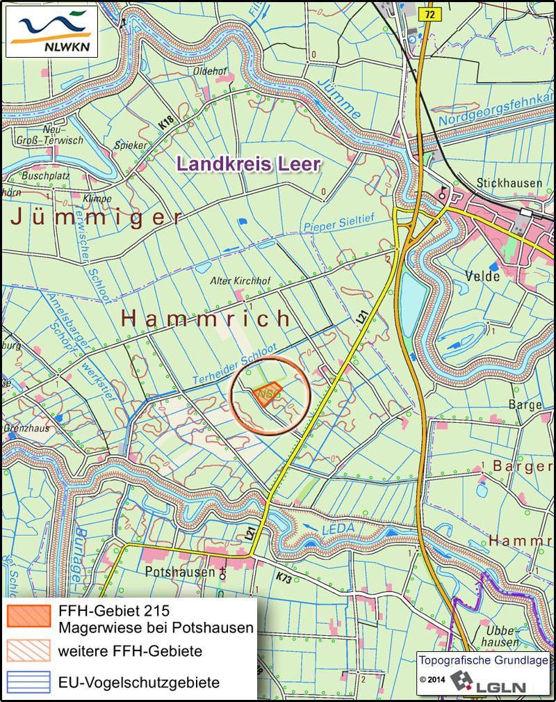 Das FFH-Gebiet „Magerwiesen bei Potshausen“ ist eine Grünlandfläche in einem entwässerten Flachmoor im von der Jümme und der Leda umschlossenen Jümmiger Hammrich. Östlich von Leer gelegen, gehört das Gebiet zum Naturraum Emsmarschen.