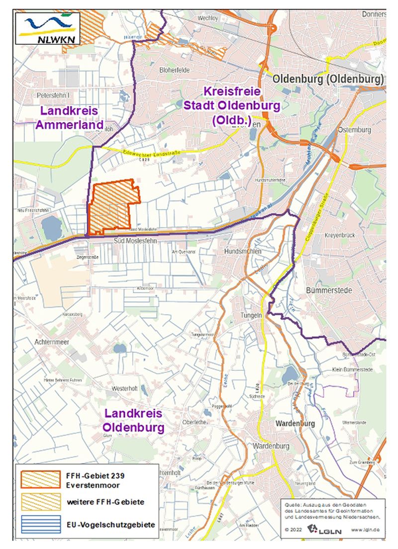 Das FFH-Gebiet „Everstenmoor“ ist ein Hochmoorrest in der Hunte-Leda-Moorniederung innerhalb des Stadtgebiets von Oldenburg. Geprägt wird das Gebiet von weitläufigen Moorwäldern, die sich auf den großflächig entwässerten Hochmoorböden entwickelt haben. Neben dem gefährdeten Königsfarn kommen hier verschiedene Torfmoosarten, zum Beispiel das Gewimperte Torfmoos, vor. Die reich strukturierten, lichten Wälder aus Moor-Birken und Wald-Kiefern bieten Reptilien wie der Kreuzotter und der Waldeidechse geeignete Lebensräume.
