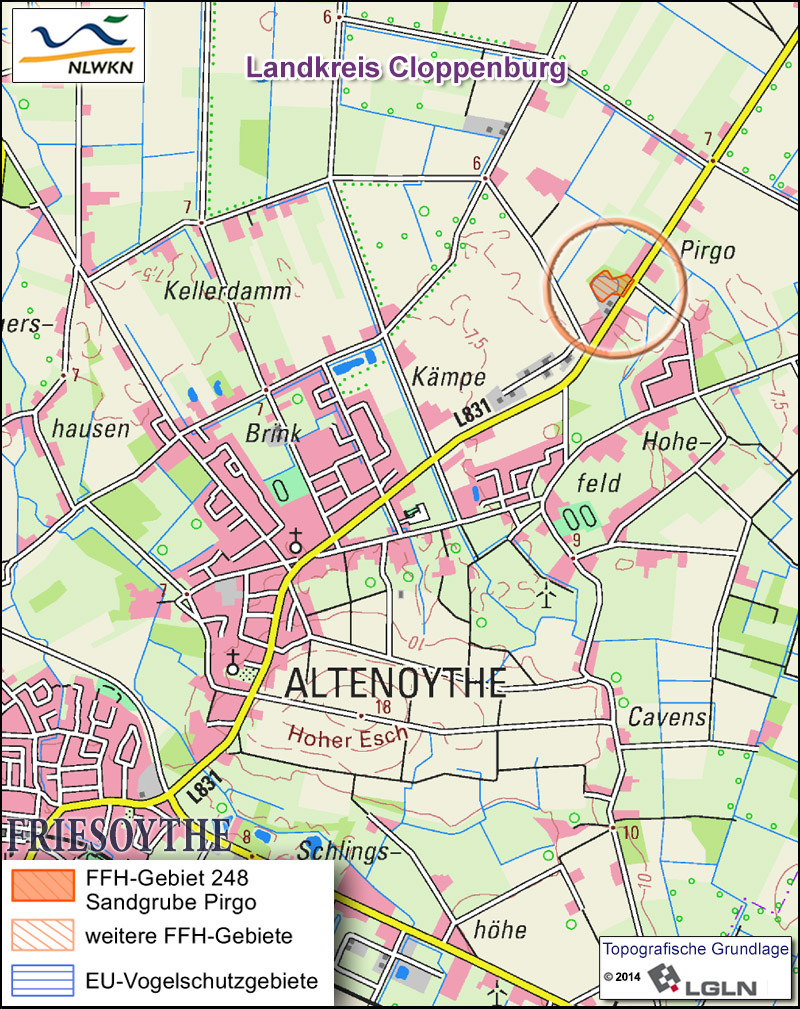 Das FFH-Gebiet „Sandgrube Pirgo“ liegt nordöstlich von Friesoythe und umfasst ein kleines, aber bedeutendes Gewässer im Naturraum Hunte-Leda-Moorniederung, welches sich in einer aufgelassenen Sandgrube entwickelt hat.