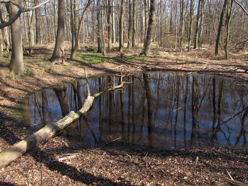 Durchsetzt sind die teils durch Alt- und Totholz strukturreichen Wälder von mehreren flachen Stillgewässern, welche geeignete Habitate für den streng geschützten Kammmolch darstellen. Kleinflächig finden sich in dem waldgeprägten Gebiet mit teils intensiv bewirtschafteten, teils als magere Flachland-Mähwiesen ausgebildeten Grünlandflächen auch Biotope des Offenlands.Sicherung des Gebietes