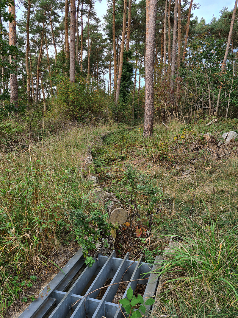 Potenzielles Kammmolch-Laichgewässer mit standortfremden Gehölzen