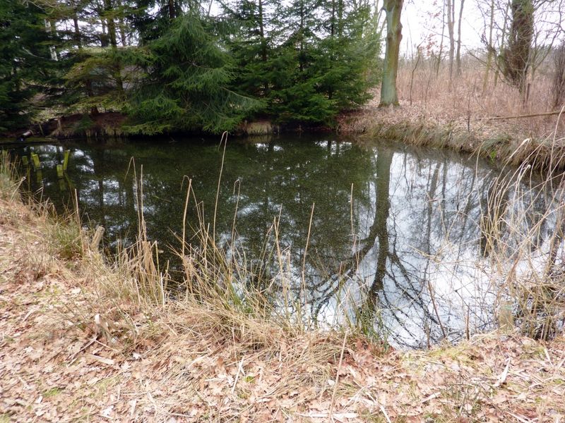 Potenzielles Kammmolch-Laichgewässer mit standortfremden Gehölzen   Bildrechte: LK Peine