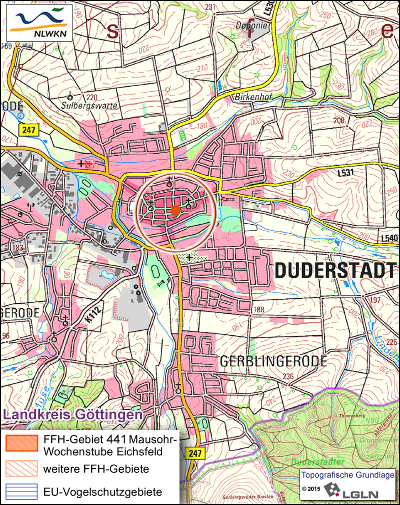 Das FFH-Gebiet „Mausohr-Wochenstube Eichsfeld“ umfasst den Dachboden des Rathauses von Duderstadt, welcher von dem streng geschützten Großen Mausohr als Sommer- und Wochenstubenquartier genutzt wird.
