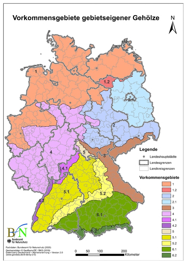 Auf Grundlage der bestehenden naturräumlichen Gliederungen wurde eine Einteilung Deutschlands in sechs Vorkommensgebiete (VKG) vorgenommen. Diese dient als Basis für die Produktion und Ausbringung gebietseigener Gehölze. Die Karte der Vorkommensgebiete gibt es