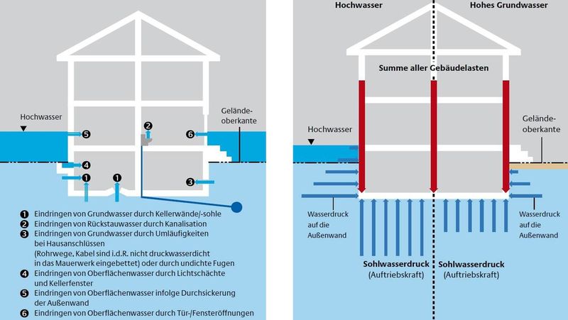 - Das Bundesamt für Bevölkerungsschutz und Katastrophenhilfe (BBK) bietet Informationen zu den Auswirkungen von Hochwasser auf Gebäude sowie zu den Schutzmaßnahmen.