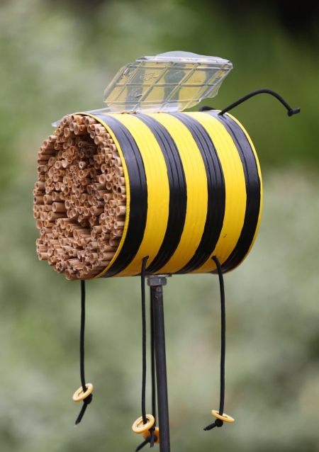 Generell können im Garten aber natürlich auch für diese Tiere gerne Nisthilfen verteilt werden. Man kann die Nisthilfe, wie auf dem oberen Bild zu sehen ist, auch auf einem Stab befestigen. Der Phantasie sind dabei keine Grenzen gesetzt, Hauptsache sie ist stabil, sonnig und regengeschützt platziert.