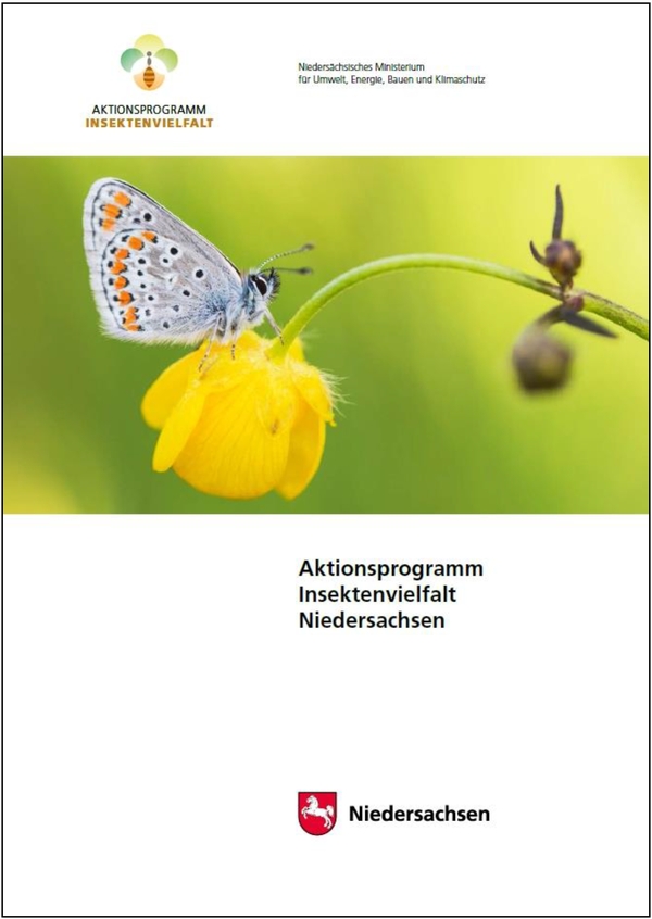 Mit dem „Aktonsprogramm Insektenvielfalt Niedersachsen“ des Niedersächsischen Umweltministeriums steht jetzt eine programmatisch fundierte Grundlage mit Handlungsmöglichkeiten, Maßnahmen und Förderprogrammen zur Verfügung, die sich in erster Linie an die Landesbehörden, Kommunen und Verwaltungen richtet. Das Programm benennt in sechs Handlungsbereichen konkrete Handlungsziele und insgesamt 103 Umsetzungsmaßnahmen zum Schutz, zur Entwicklung und zur Förderung der Insektenvielfalt, die kurz-, mittel- und langfristig angegangen werden sollen.