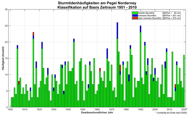 Eine solche Sturmtidenkette ist ungewöhnlich, aber nicht vollkommen neu: Vom 2. bis 4. Januar 1922 traten ebenfalls sechs Sturmtiden hintereinander auf, vom 26. Februar bis 2. März 1990 sogar acht und vom 13. bis 16. Dezember 2000 wiederum sechs Sturmtiden. Eine grundsätzliche Häufung von Sturmfluten aufgrund des Klimawandels ist anhand der Aufzeichnungen des vom Wasserstraßen- und Schifffahrtsamt Ems-Nordsee betriebenen Pegels Norderney, wo seit mehr als 100 Jahren der Wasserstand erfasst wird, bisher nicht zu erkennen.