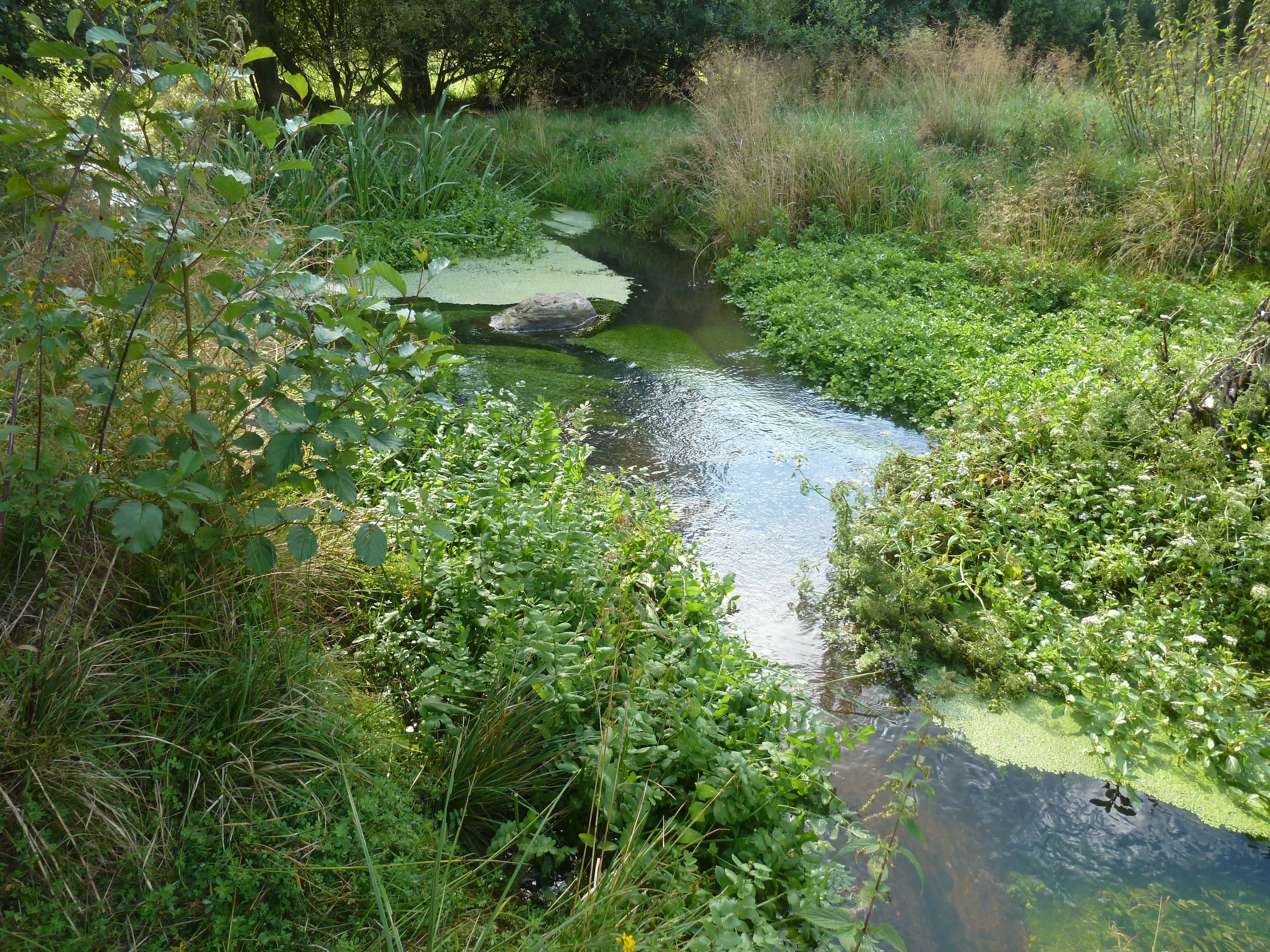 Abb. 4: Artenreiches Wasserpflanzenaufkommen im neuen Gewässerverlauf.