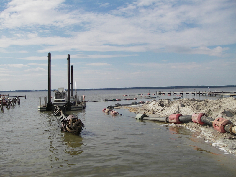 Ein Saugbagger sorgt am Steinhuder Meer regelmäßig dafür, dass insbesondere die Steganlagen weiter benutzt werden können.