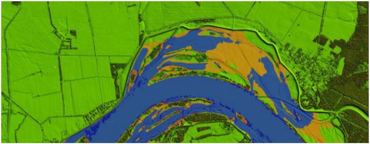 Auf dieser Grundlage wurde in einem ersten Schritt die hydraulische Wirkung von Gehölzentnahmen untersucht, um eine möglichst hohe Wasserspiegelabsenkung bei Extremhochwasser zu erzielen. Aus den simulierten Gehölzentnahmen konnte im Modell ein linearer Strömungskorridor abgeleitet werden, der künftig für einen ausreichenden Hochwasserabfluss dauerhaft freizuhalten ist. Das bedeutet, dass Gehölze innerhalb dieses Korridors in Zukunft nicht mehr aufwachsen sollen.