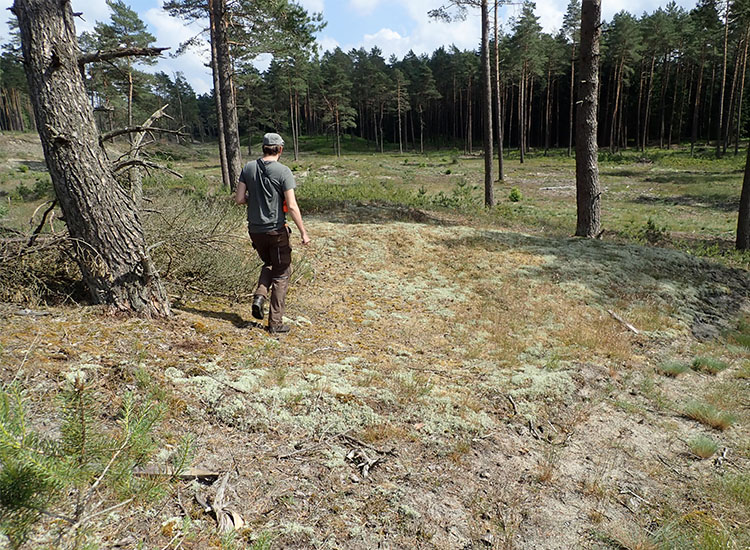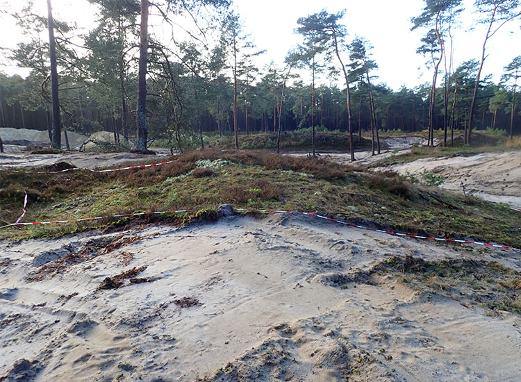 Im Nordwesten des Maßnahmengebietes liegt ein landesweit bedeutsamer Fund aus dem Paläolithikum. In der Altsteinzeit war dieser Dünenzug bereits vorhanden und wurde von Rentierjägern als Lagerplatz genutzt. Die Fundstelle wurde 1879 bei Forstvermessungen entdeckt. Die Umsetzung der Maßnahme musste daher nahtlos archäologisch begleitet werden. Während des Oberbodenabtrags entdeckte die beauftragte Archäologin an mehreren Stellen kleine Steinsplitter, die darauf hindeuten, dass am Fuße der Dünen die Rentierjäger Werkzeuge hergestellt haben.