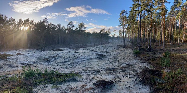 Die Binnendünen bei Ehrhorn in der Lüneburger Heide haben im Laufe der Jahrtausende Wald kommen und gehen gesehen. Archäologische Untersuchungen ergaben jüngst, dass die Entstehung der Dünen im Forstgebiet am »Großen Sand« bis in die letzte Kaltzeit zurückgehen muss – eine in dieser Region baumfreie Zeit. Vor etwa 12.000 Jahren begannen die Wälder zunächst die nacheiszeitlichen Steppen Mitteleuropas zurückzuerobern, bis im Mittelalter großflächige Rodungen ihren Höhepunkt fanden. In dieser Zeit entstanden Landschaften wie die Lüneburger Heide.