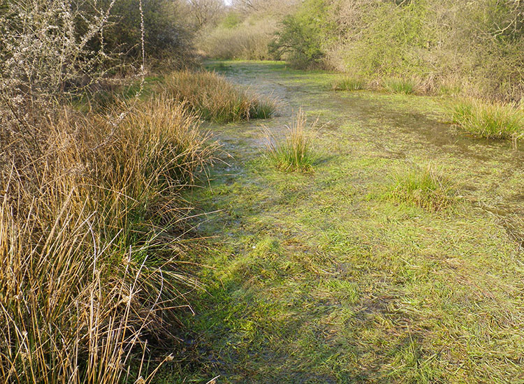 Trocken: Zeitweilig trockenfallende Uferbereiche bzw. ganze Gewässer sind kein Problem für das Froschkraut. Bei langfristig ausbleibenden Niederschlägen und dauerhaftem Trockenfallen verschwindet die Art aber rasch.