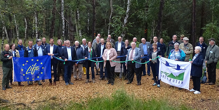 Der Knoten ist geplatzt. Die umfangreichen Vorarbeiten und der lange Atem aller Beteiligten haben sich ausgezahlt. Das LIFE+-Projekt „Hannoversche Moorgeest“ ist in die Umsetzungsphase gestartet. Umweltminister Olaf Lies ließ es sich nicht nehmen, persönlich den Baustart mit dem Projektträger und allen beteiligten Akteuren zu feiern. Bis dahin mussten zahlreiche Hindernisse aus dem Weg geräumt werden – nicht zuletzt 22 Klagen gegen die Flurbereinigung und Planfeststellungen.