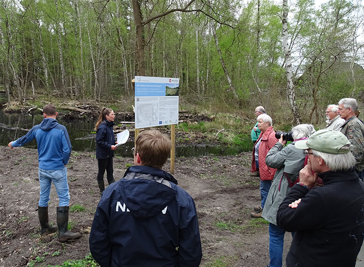 Die Maßnahmenumsetzung hat eine hohe Akzeptanz bei den lokalen Akteuren und den Anwohnern. Die bisherige Beteiligung und Öffentlichkeitsarbeit hat sich ausgezahlt. Mit der Sichtbarkeit der Baumaßnahmen zeigt sich aber auch, dass einige Anwohner und Erholungssuchende noch Erklärungsbedarf haben. Zum einen werden die notwendigen Gehölzentnahmen teils kritisch hinterfragt, zum anderen ist der Zustand der Wege während der Bauphasen ein wichtiges Thema. Die Öffentlichkeitsarbeit wurde durch das Projektmanagement noch einmal zusätzlich intensiviert. Dazu gehören u. a.: