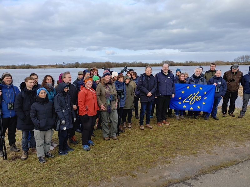 Durch seinen außergewöhnlichen Artenreichtum ist das Vogelschutzgebiet Dümmer ein Hotspot der Biodiversität. Die nassen Feuchtwiesen bieten im März einen wertvollen Lebensraum für selten gewordene Wiesenvögel, die nach ihrer Rückkehr aus den Überwinterungsgebieten hier brüten und ihre Jungen großziehen. Im März 2023 bot dieser zentrale Projektstandort des LIFE IP-Projekts GrassBirdHabitats die passende Kulisse für einen Besuch von Niedersachsens Umweltminister Christian Meyer und Sylvia Barova von der EU, zuständig für LIFE-Projekte und Naturschutz.