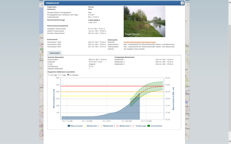 Beispielhafte Hochwasservorhersage an Pegel Ohrum an der Oker   Bildrechte: NLWKN