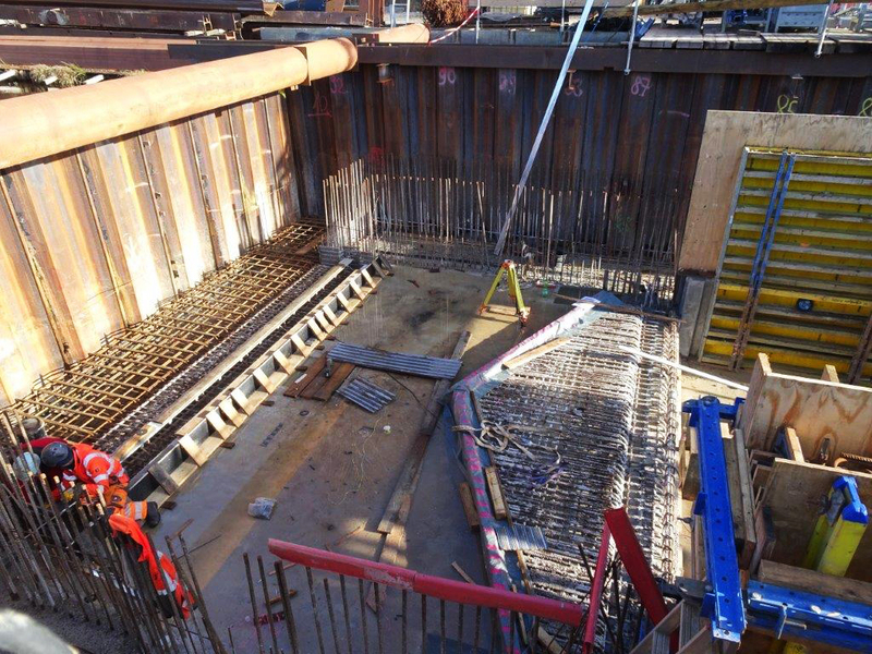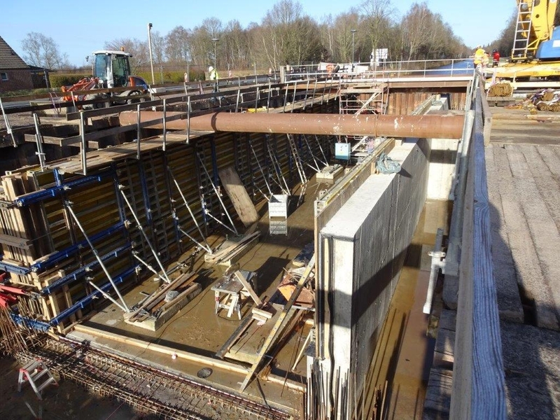 Ebenfalls planmäßig fertiggestellt werden konnte der unterirdische Massivbau des Bypass-Bauwerks. Es soll künftig das Managen von Hochwassersituationen an der Schleuse deutlich erleichtern. Im Schutz der Spundwände werden zudem die Häupter und die Kammer der neuen Schleuse selbst hergestellt. Im Frühjahr 2025 stehen hier die westliche Kammerwand sowie die vertikal aufgehenden Betonbauteile der Schleusenhäupter im Fokus.