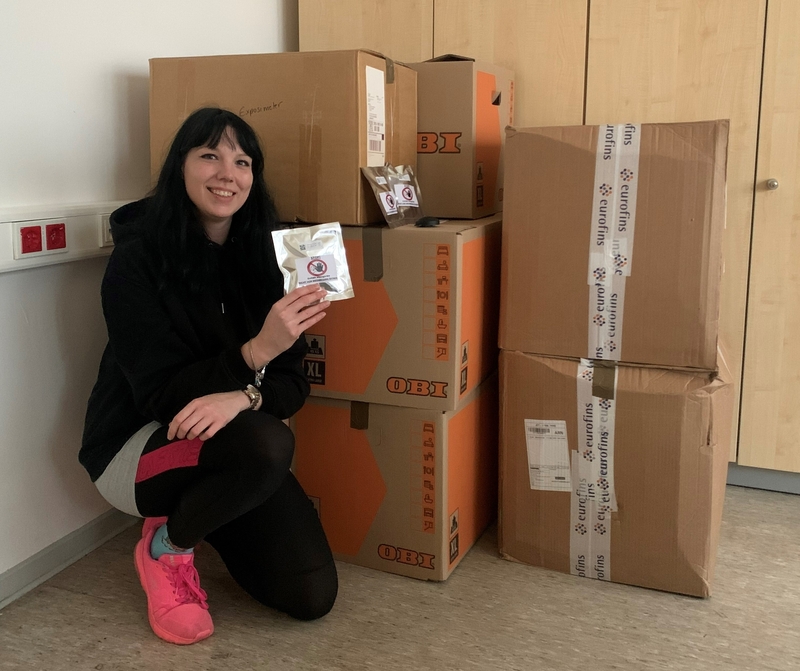 Mehr als 1400 Dosimeter mit Gebrauchsanleitung werden von Alice Heinrich und vom restlichen Team der Radonberatungsstelle des NLWKN in Hildesheim verpackt für den Versand an die Haushalten der nächsten Messkampagne. (Foto: Susanne Herrmann / NLWKN)