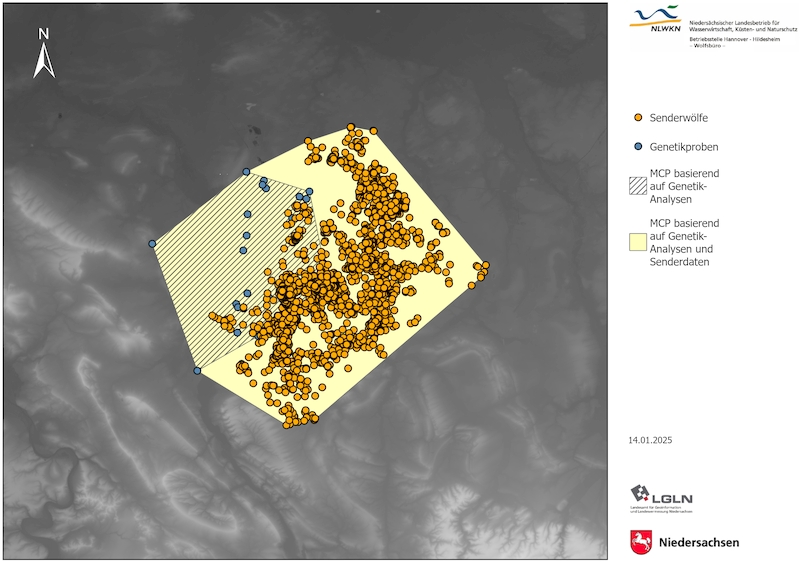 Seit 2023 wurden in Niedersachsen insgesamt drei Wölfe mit Satellitenhalsbändern ausgestattet: zwei Rüden und eine Fähe, die Fähe und ein Rüde waren Wurfgeschwister. Diese Wölfe lieferten bereits wertvolle Daten, indem die Halsbänder mehrmals täglich Informationen zur Position der Tiere sendeten.