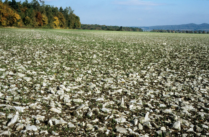 Kalkscherben-Acker mit Einsaat von Wintergetreide; Innerstebergland bei Ostlutter; A11.02; AK.g; Foto: O. v. Drachenfels