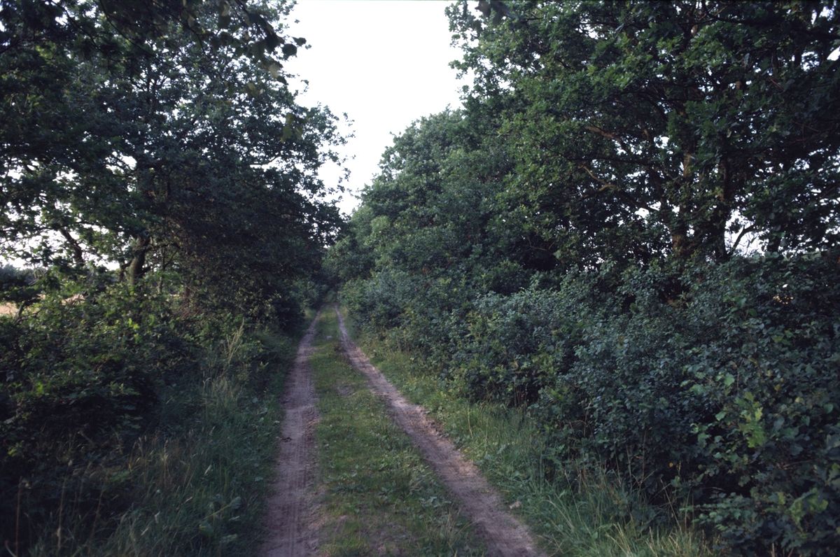 Dichte Wallhecken aus Sträuchern und Eichen entlang eines Weges (mit Trittrasen); Geest bei Cuxhaven; HWM.d/OVW