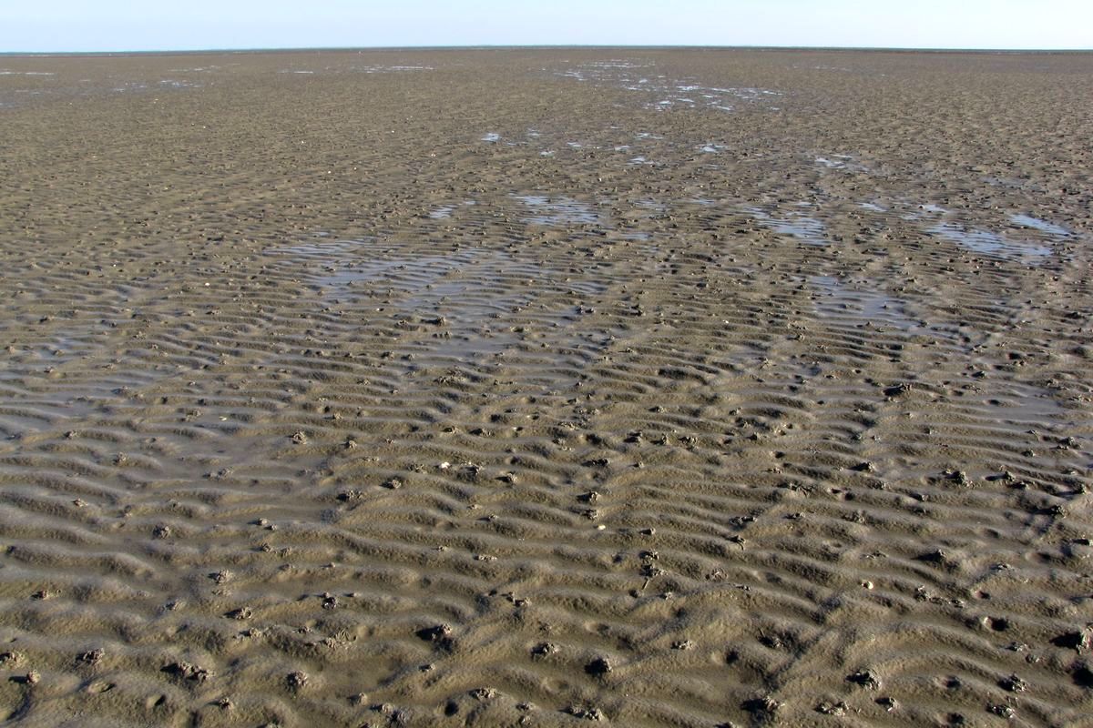 Vegetationsloses Sandwatt im Wattenmeer bei Lütjehörn; E9.2016; KWK.s [FFH 1140]