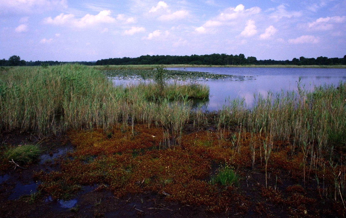 Dystropher Moorsee mit Schilfröhricht, Seerosen und Schnabelried-Gesellschaft auf Torfschlamm; Gildehauser Venn bei Bad Bentheim; E7.88; VORS/VOS/SON [FFH 3160] / MSS [FFH 7150]