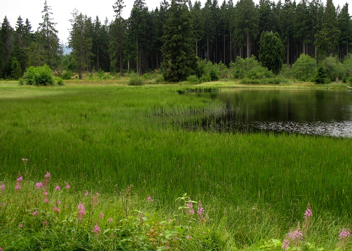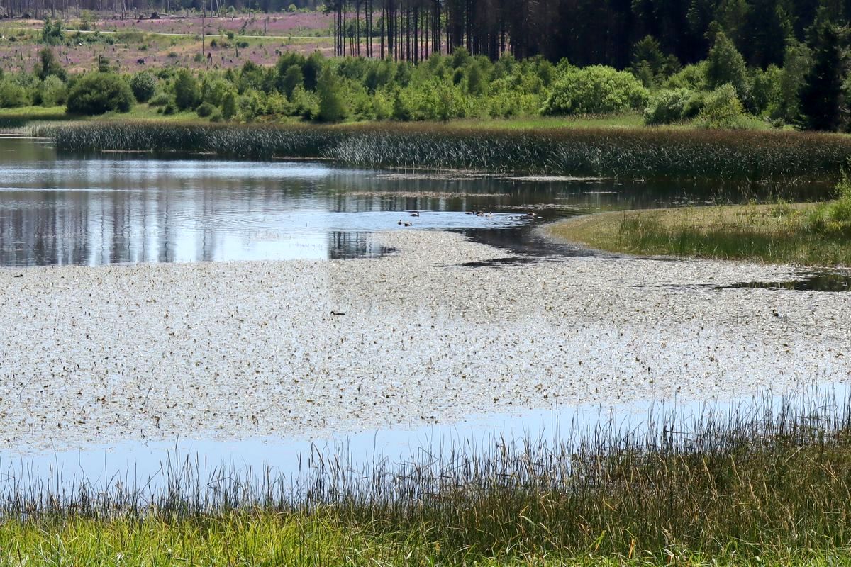 Oligotrophes Staugewässer im Bergland mit Teichsimsenröhricht und Schwimmendem Laichkraut; Hirschler Teich bei Clausthal-Zellerfeld; M7.2022; SOT.o / VORT / VORS (FFH 3130)