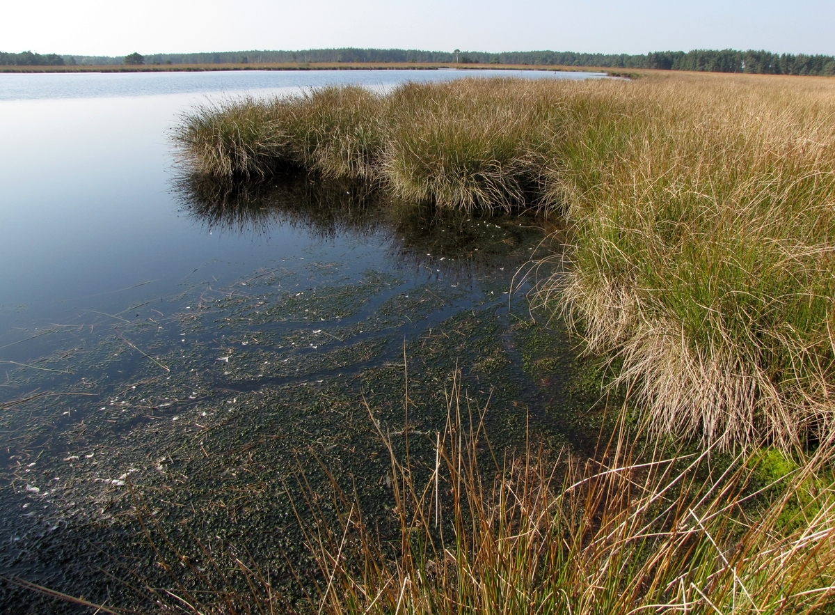 Flatterbinsen-Ried am Ufer eines wieder hergestellten (vor Jahrhunderten trocken gelegten) Hochmoorsees; Grundloser See im Rehburger Moor; E9.11; SOM.d/VOB [FFH 3160]