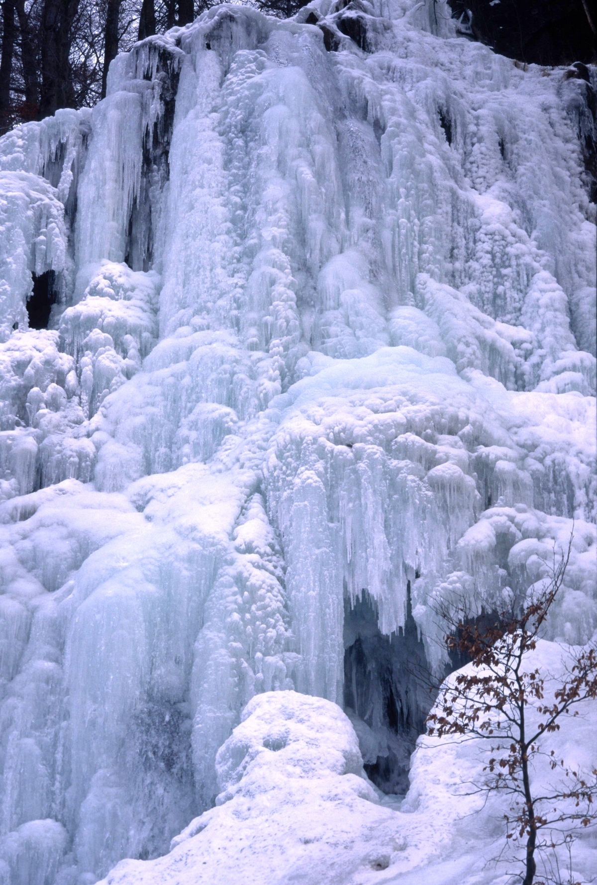Künstlich angelegter, kalkarmer Wasserfall im Winter; Radau-Wasserfall bei Bad Harzburg; M2.96; FSK.a