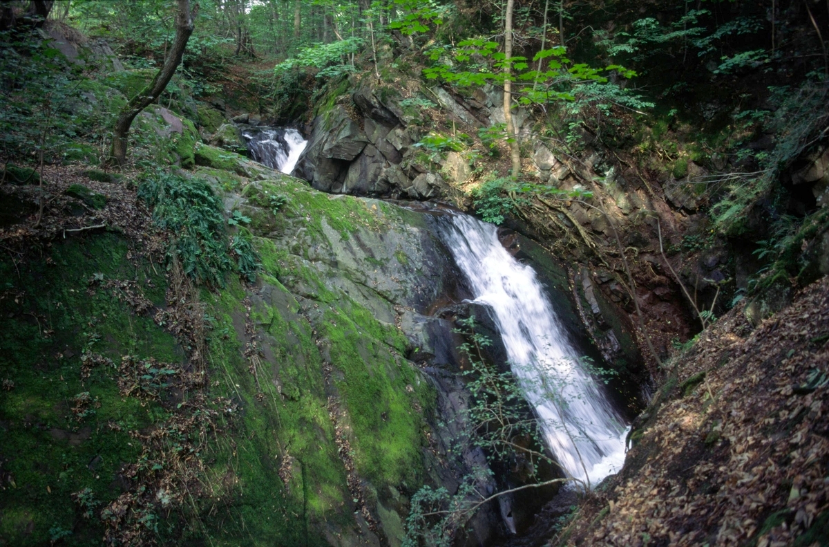 Natürlicher Wasserfall im Verlauf eines kalkarmen Bergbaches; Lonau bei Herzberg/Harz; M9.95; FSN.a