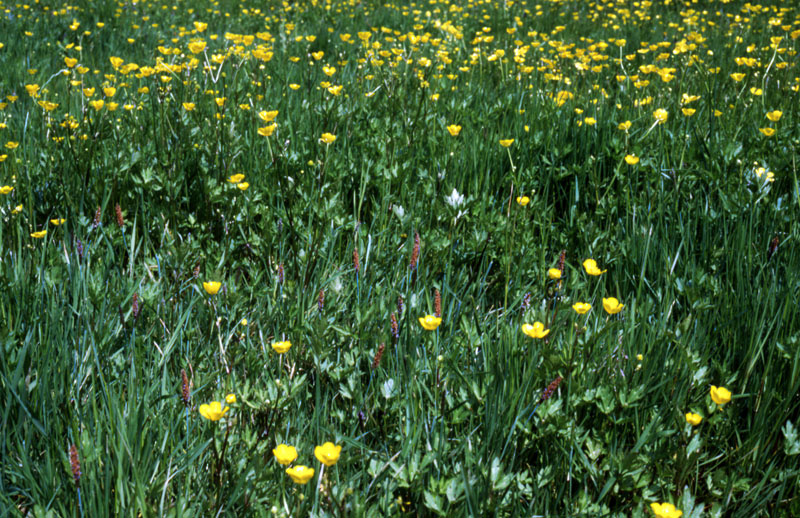 Knickfuchsschwanz-Rasen mit viel Kriechendem Hahnenfuß (Senke in einer Mähweide auf Auenstandort); Leineaue bei Hannover; A5.94; GFF.mw; Foto: O. v. Drachenfels