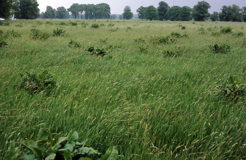 artenarme Wiesenfuchsschwanz-Wiese (mit Stumpfblättrigem Ampfer) im Überschwemmungsbereich; Elbaue bei Gorleben; M5.90; GIA.m; Foto: O. v. Drachenfels