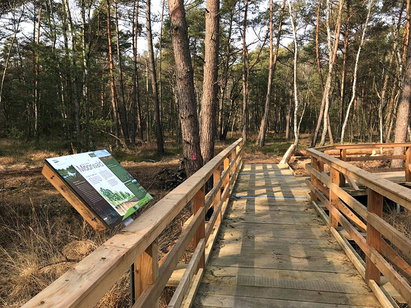 Nachdem der Moorerlebnispfad nun fertiggestellt wurde, sind auch die dort ursprünglich vorhandenen Infotafeln wieder installiert worden. Dazu wurden sie von ihren Holzgestellen abgebaut und auf eigens angefertigte Halterungen, z. B. am Geländer des Holzsteges über den Moorflächen, neu montiert.