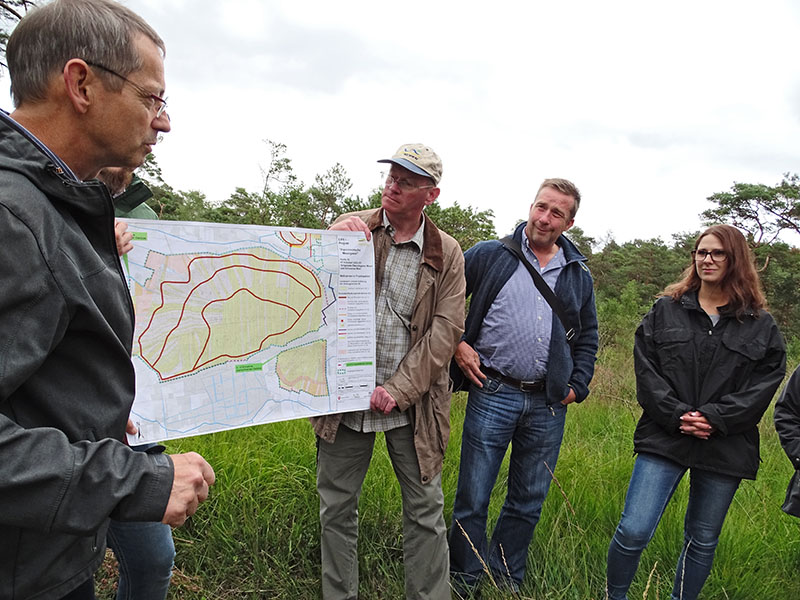 Themen waren die Rahmenbedingungen des LIFE+-Projektes, der zeitliche Rahmen und der aktuelle Sachstand des Projektes sowie die geplanten Maßnahmen und deren vorhergesagte Auswirkungen auf die örtliche Flora und Fauna.